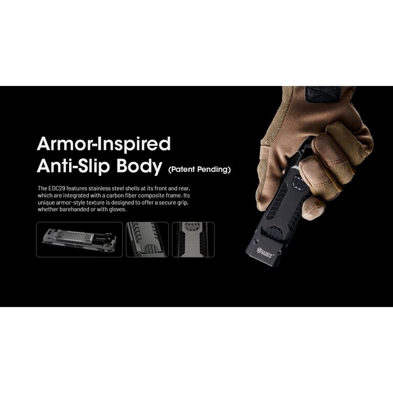 Nitecore EDC29 bola navrhnutá tak, aby odolala nástrahám každodenného používania. Kompaktné telo a robustná konštrukcia zaručujú dlhú životnosť. Elegantný dizajn sa ľahko začlení do vášho vybavenia a zostane s vami pri každej príležitosti.