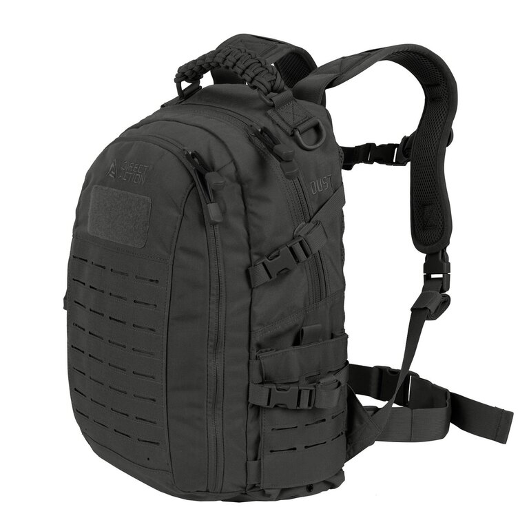 Lasser Cut MOLLE prináša batohu nízkoprofilovú väzbu. Celkovo vďaka tomu pôsobí Dust® MK II dojmom minimalistickej batožiny, ktorá ale čiastočne klame a aj cez menší vzhľad poskytuje dostatok úložného priestoru, ktoré sú pre batohy z kategórie One Day Carry potrebné. Laser Cut úprava tiež zvyšuje vodeodolnosť.