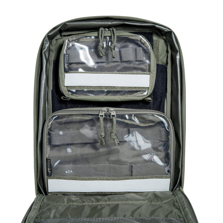 Batoh funguje ako doplnok k chest rigu alebo nosiču plátov, na ktorý sa priamo pripája. Ponúka hlavnú priehradku, tri predné vrecká a priehradku na balistický plát. Vďaka tomu zachováva osvedčené rozloženie výbavy a pridáva ďalší úložný priestor bez nutnosti meniť základný setup.