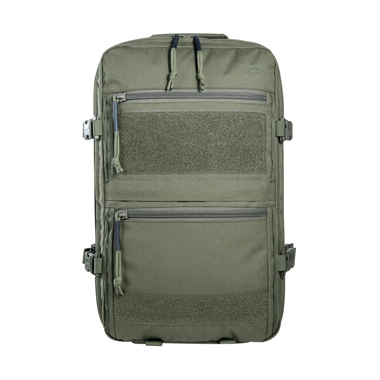 Predná komora obsahuje štyri odnímateľné vrecká na zips s priehľadným vekom, ktoré sú upevnené na suchom zipsu. Vo veku nájdete ploché organizéry pre dokumenty a drobnosti. Zadná komora ponúka veľkoplošný velcro panel a dva rady MOLLE väzby pre individuálne usporiadanie výstroja podľa aktuálnej potreby.