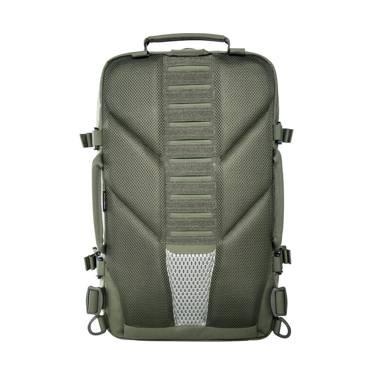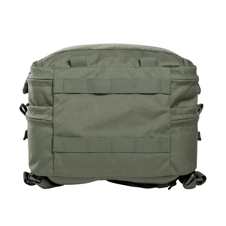 Predný daisy chain a MOLLE väzba umožňujú pripojenie ďalšieho vybavenia. Batoh má tri držadlá na manipuláciu, háčik na zavesenie a je kompatibilný s hydratačným vakom. Vďaka modulárnej konštrukcii si ho ľahko prispôsobíte podľa konkrétneho použitia.