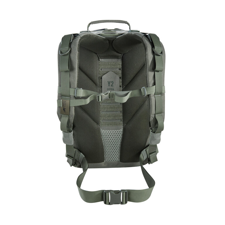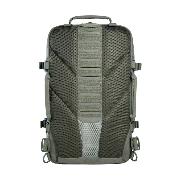 Veľké plochy na suchý zips v oboch komorách umožňujú pripevniť ďalšie vybavenie, aby ste ušetrili miesto a zároveň mali všetko po ruke. Prednú stranu dopĺňa MOLLE systém a daisy chain, pričom nechýba ani popruh pre dočasné zabezpečenie otvorenej zadnej komory pri zavesení.