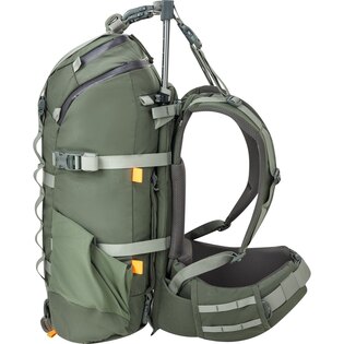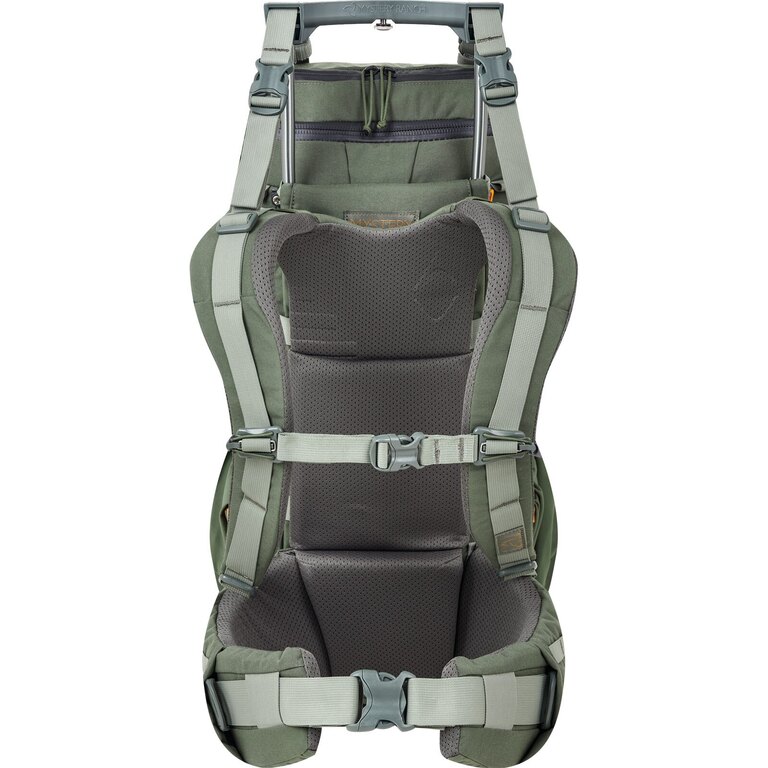 Teleskopický hliníkový rám je navrhnutý pre vyššiu nosnosť a umožňuje nastavenie podľa potreby. Nosný systém prispôsobiteľný dĺžke trupu pomáha rozložiť hmotnosť a zvyšuje komfort pri nosení. Konštrukcia vychádza zo skúseností značky Mystery Ranch s vývojom výbavy pre náročné podmienky.