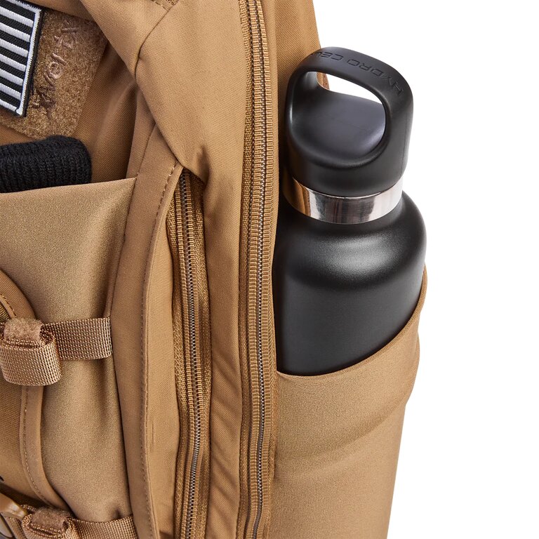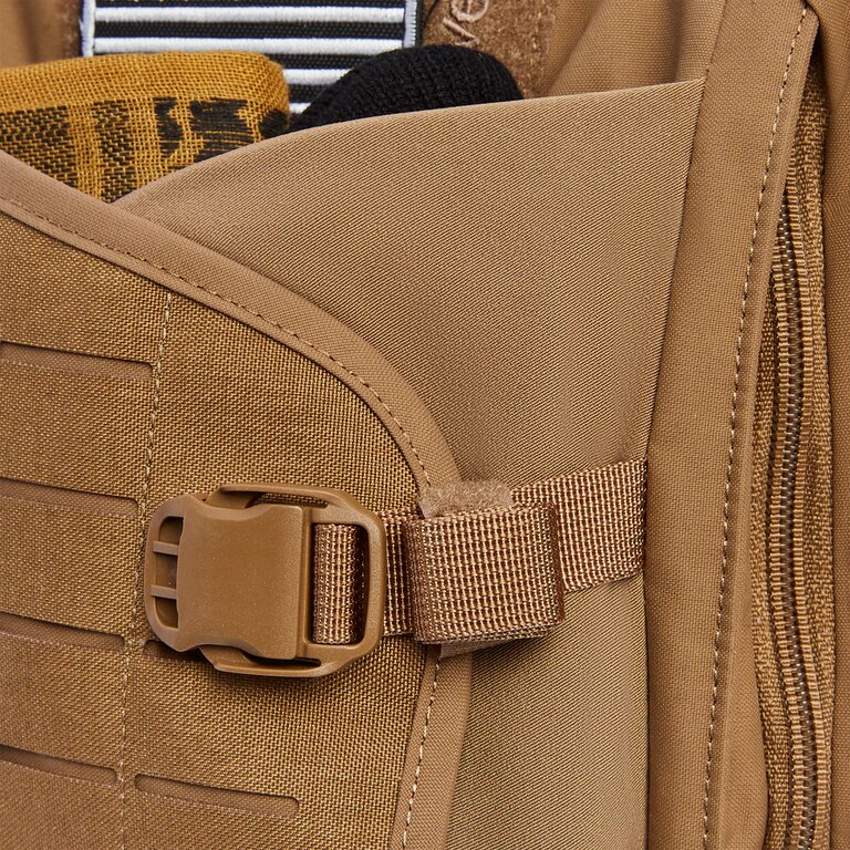 Predné vrecko sa dá podľa potreby rozšíriť alebo stiahnuť. Keď je potrebné pribaliť bundu, topánky alebo ďalšiu vrstvu, vrecko ponúkne dostatok miesta. Ak je výbavy menej, kompresné popruhy držia všetko kompaktne pri tele batohu. Predná časť dopĺňa MOLLE panel, ktorý umožňuje pripevniť ďalšie vybavenie.