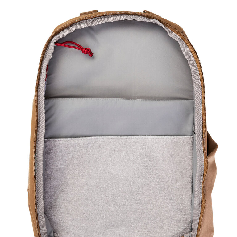 Hlavná komora ponúka viac vrstiev organizácie, takže výbava neleží v jednej kôpke. Vo vnútri sú sieťované vrecká, administratívne priehradky aj elastické úchyty pre drobnosti. Nechýba ani samostatné vrecko pre notebook alebo tablet s velcro panelom. Vďaka tomu je možné vnútorný priestor prispôsobiť podľa toho, čo je práve potrebné niesť.