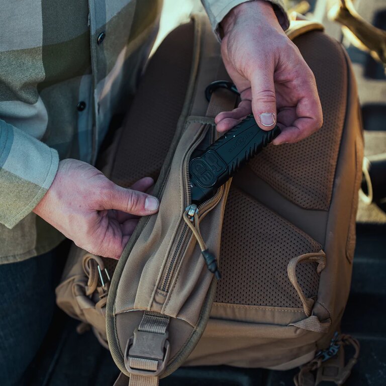 Konštrukcia cez jedno rameno umožňuje batoh v priebehu sekundy prevrátiť zozadu dopredu a dostať sa k vybaveniu bez skladania. Za predným panelom sú dve EDC vrecká s velcro výstelkou na uchytenie kompatibilného príslušenstva. Dôležité veci tak zostávajú presne tam, kde majú byť. Prístup k nim je rýchly a prehľadný, čo ocení každý, kto potrebuje reagovať bez zbytočného hľadania.