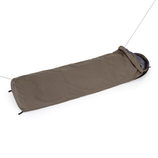 Na vrchnej strane vaku nájdete tri pútka pre prichytenie šnúrky a vytvorenie improvizovaného „stanu“. Ďalšie pútka pri hlave a nohách umožňujú pevné ukotvenie vaku kolíkmi do zeme.