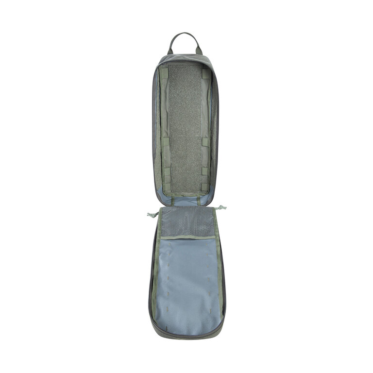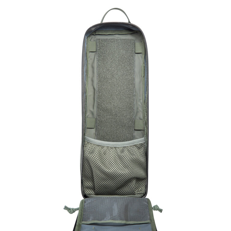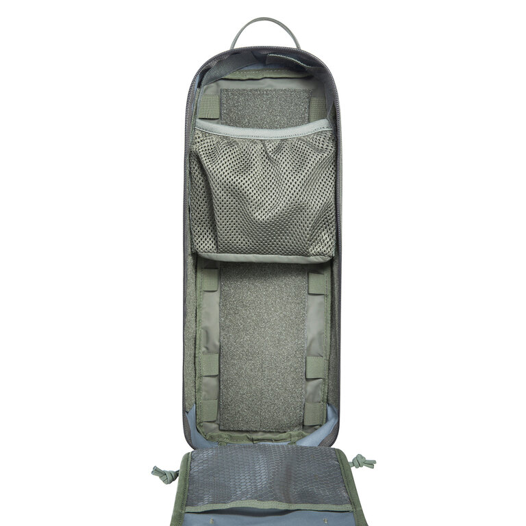 Vnútri vrecka sú dve priehradky oddelené polstrovaným deličom a MOLLE systém, ktorý poskytuje priestor pre pripojenie ďalšieho vybavenia alebo organizérov. Sieťované a zipsové vrecká udržia menšie vybavenie prehľadné a bezpečne uložené aj pri rýchlom vyberaní.