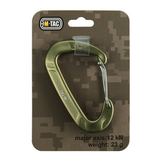 Hliníková karabína Typ2 M‑Tac je asymetrická karabína v tvare D, ktorá rýchlo a bezpečne pripevní vašu výbavu na batoh alebo opasok. Vďaka ľahkému, ale pevnému materiálu zvládne časté používanie a odolá poveternostným vplyvom pri turistike alebo outdoorových aktivitách. Umožňuje efektívnu organizáciu vybavenia a nezaťaží vašu výbavu nadbytočnou hmotnosťou.