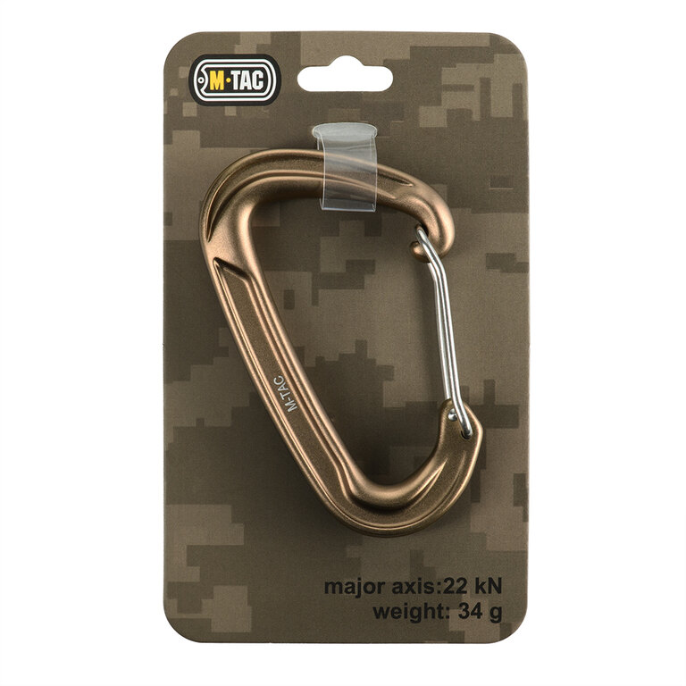 Hliníková karabína Typ3 M-Tac rýchlo a bezpečne pripojí výbavu k batohu, opasku alebo MOLLE systému. Zvládne časté používanie a dlho vydrží, pričom zbytočne nepridáva váhu k výbave vďaka ľahkému hliníkovému materiálu. Je kompaktná a jednoducho sa ovláda aj v rukaviciach.