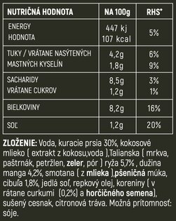 Orient Kuracie spája jemné kuracie mäso s exotickou omáčkou s mangom a voňavým korením. Výsledok? Vyvážená, ľahko pikantná a osviežujúca chuť, ktorá zasýti a dodá energiu. Kombinácia ryže, bielkovín a korenia dáva zmysel – žiadne kompromisy, len poctivé jedlo.