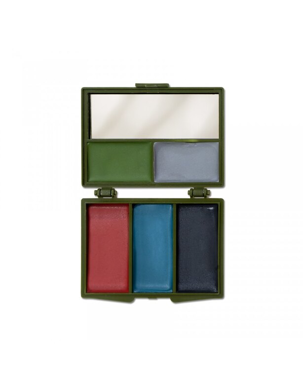 Maskovacie farby sú uložené v malom, vodotesnom a vzduchotesnom puzdre, ktoré chráni obsah pred vysychaním aj vplyvom počasia. Pod vekom nájdete praktické zrkadielko, ktoré uľahčí aplikáciu aj bez ďalšej výbavy priamo v teréne, takže nemusíte nosiť extra drobnosti navyše.