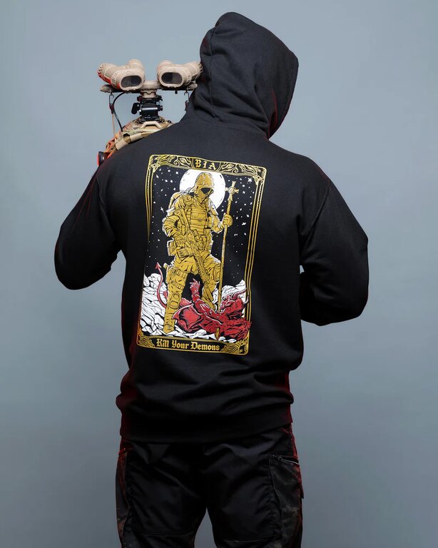 Na hrudi nesie jasné posolstvo: Kill Your Demons. Krátke, tvrdé, pravdivé. Každý má svoje démony – lenivosť, strach, zlozvyky. Táto mikina je symbolom odhodlania postaviť sa im čelom a vyhrať. Nie kvôli ostatným, ale kvôli sebe.