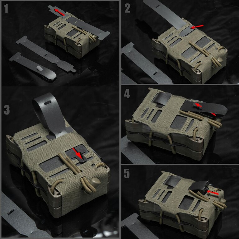 | Ďalšie špecifikácie | Strap A: Vhodný pre malé puzdrá, ktoré zaberajú na výšku 2 MOLLE polia Strap B: Vhodný pre stredné puzdrá, ktoré zaberajú na výšku 3 MOLLE polia Strap C: Vhodný pre väčšie puzdrá, ktoré zaberajú na výšku 4 MOLLE polia |