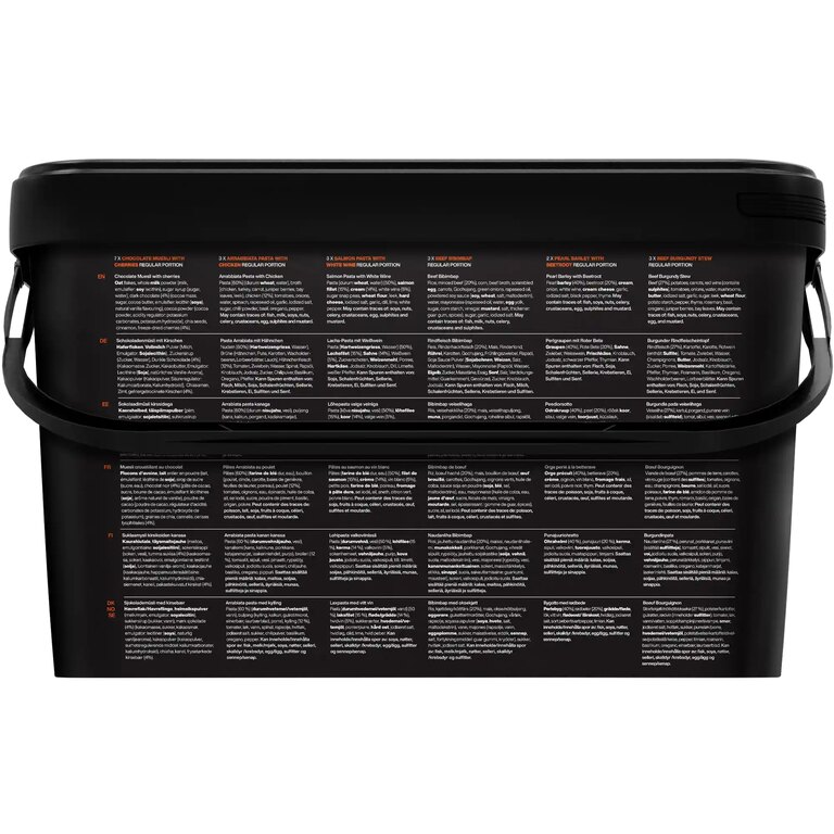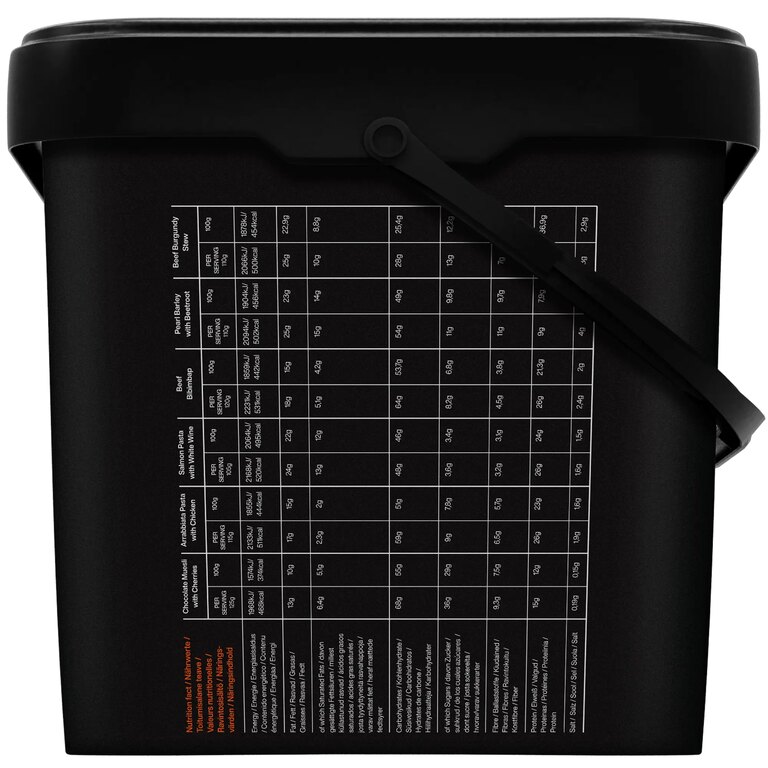 | Súčasťou dodávky | Balené vo vodotesnej nádobe Celkom 21 jedál 7× Čokoládové müsli s čerešňami 3× Cestoviny Arrabiata s kuracím mäsom 3× Cestoviny s lososom a bielym vínom 3× Hovädzí Bibimbap 2× Perlový jačmeň s červenou repou 3× Hovädzí guláš po burgundsku |