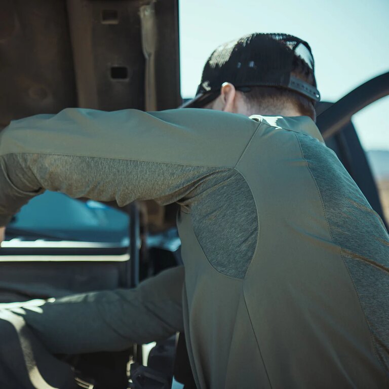 Klinové panely pod pažami a na chrbte zabezpečujú voľnosť pohybu pri natiahnutí rúk, ohýbaní alebo šplhaní. Atletický strih kombinuje pohodlie s elegantným vzhľadom, takže košeľa je vhodná pre aktívne vonkajšie použitie aj bežné nosenie.