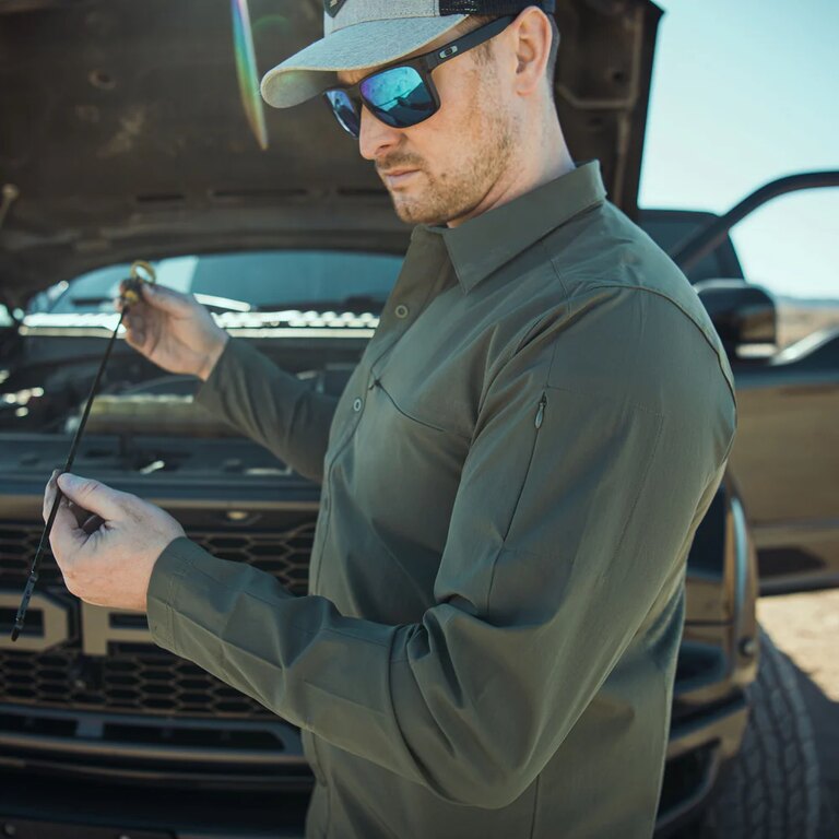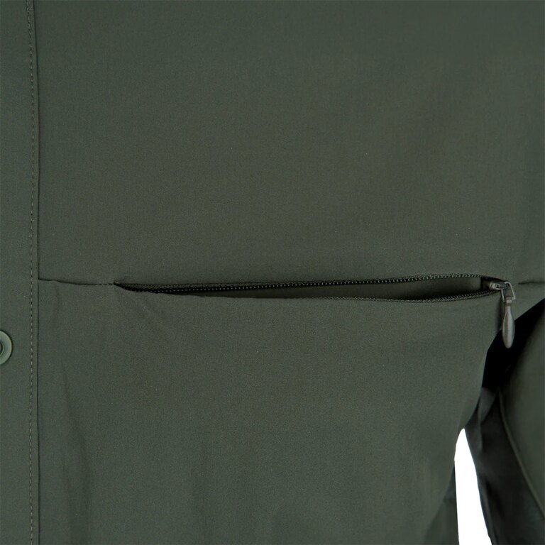 Košeľa disponuje viacerými vreckami – zipsové vrecko na hrudi, zipsové vrecko na rukáve a dve mini vrecká pri spodnom leme – takže najdôležitejšie veci máte stále po ruke. Kompatibilita s CCW nosením umožňuje skombinovať komfort a jednoduchý prístup k vybaveniu bez obmedzenia pohybu.