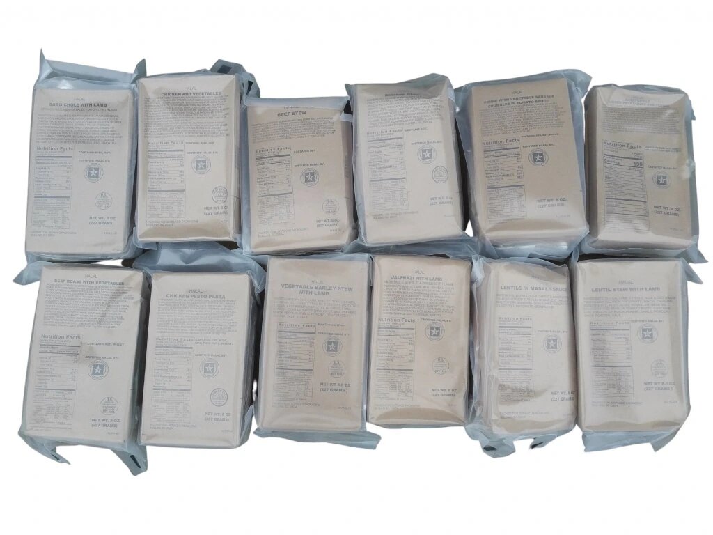 Jedlá sú pripravené podľa islamských pravidiel Halal, čo zaručuje, že sú povolené a bezpečné na konzumáciu pre moslimov. Každý balíček má hermeticky uzavretý obal, minimálnu dobu trvanlivosti dva roky a obsahuje výber menu od duseného hovädzieho mäsa po kuracie špeciality či vegetariánske varianty.