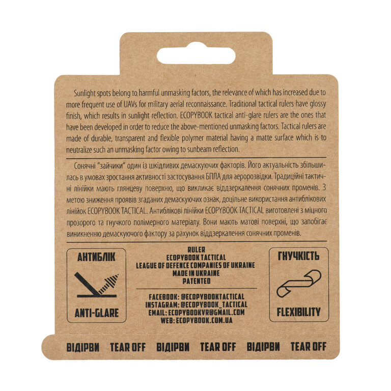 Taktické pravítko M-Tac GTA NATO patrí do série produktov Ecopybook a rovnako ako celý rad bolo navrhnuté tak, aby obstálo pri plnení taktických úloh v poľných podmienkach. Oproti klasickým pravítkom nevrhá tento model vďaka antireflexnému povrchu „prasiatka“, takže vás neprezradí nepriateľovi.