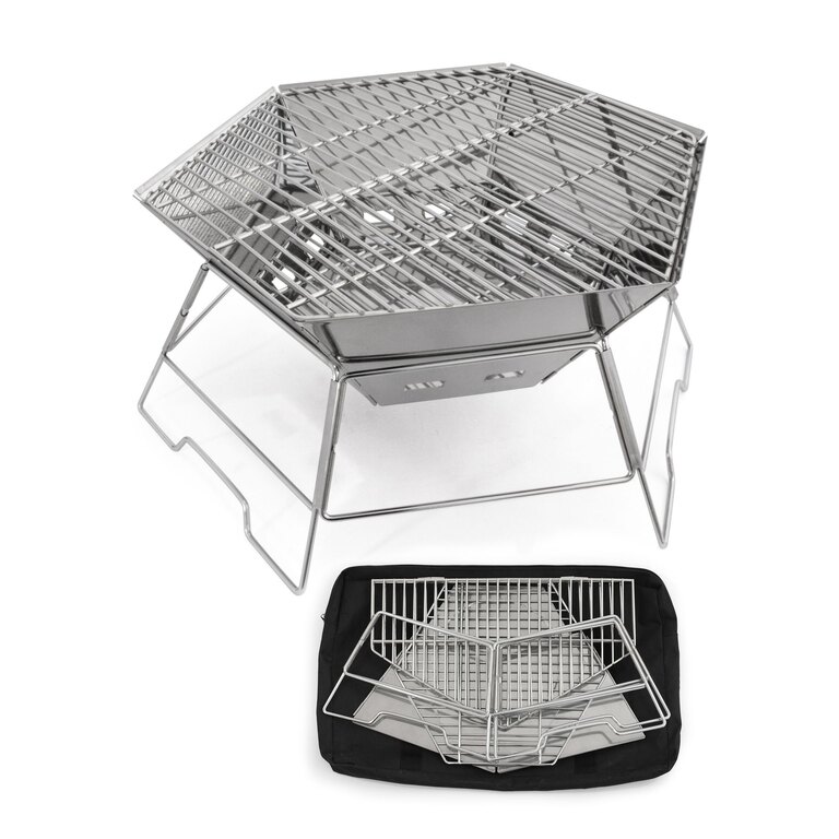 Prenosný skladací gril Hexagon Origin Outdoors ponúka veľkú grilovaciu plochu v kompaktnom skladacom prevedení, ktoré sa ľahko prenáša a skladuje. Šesťuholníkový tvar pomáha udržať stabilitu pri grilovaní a zároveň chráni oheň pred vetrom. Je vhodný na kempovanie, výlety aj dlhší pobyt vonku.
