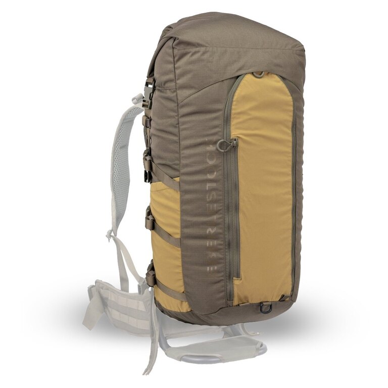 Uchytiť prídavný vak Ultralight Vapor 5000 Eberlestock® je veľmi jednoduché. K rámu ho totiž behom chvíľky upevníte pomocou odolného zipsu YKK. Na stabilné uchytenie slúžia tiež praktické pracky na oboch stranách.