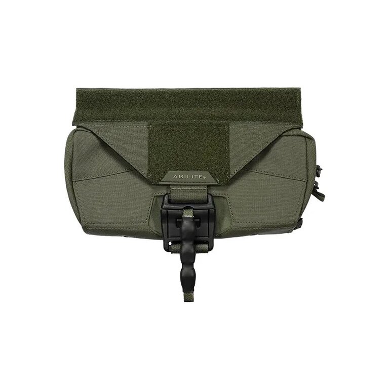 Púzdro Rear Hanger Agilite Gear je uložené vzadu, ale prístup k nemu máte aj sami. Ergonomické pútko a rýchloodnímateľný systém umožnia vrecko otvoriť aj zatvoriť jediným ťahom. A keď je to potrebné, dá sa dočasne pripevniť dopredu na suchý zips nosiča alebo sumky, aby bol obsah hneď po ruke.