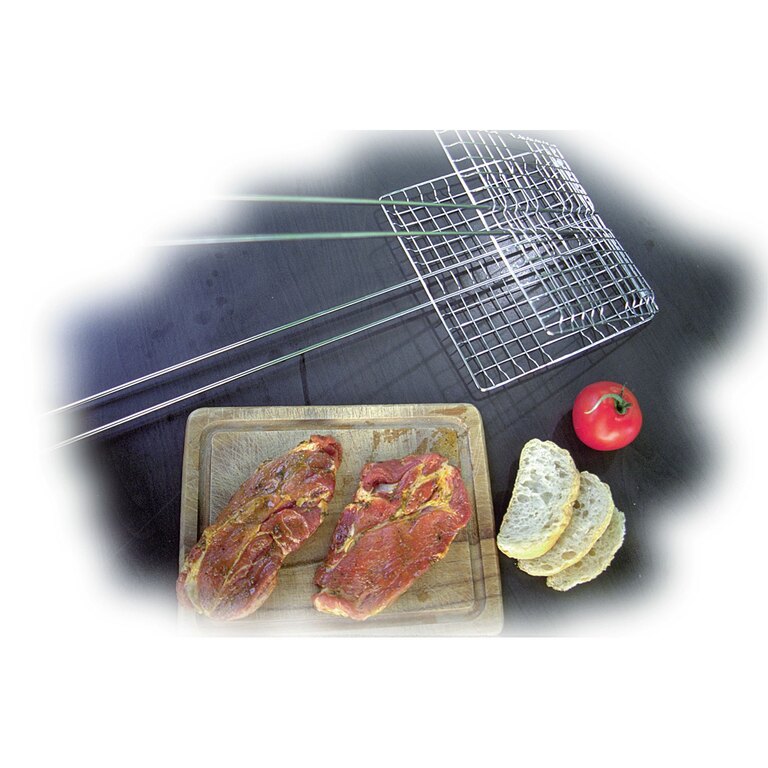 Dlhá rukoväť (75 cm) umožňuje bezpečnú manipuláciu nad ohňom a dostatočný odstup od žiary. Konštrukcia je jednoduchá, funkčná a pripravená na rýchle použitie bez zložitej prípravy.