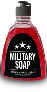 Špeciálna receptúra ochranného mydla Military Soap účinne a šetrne čistí pokožku od najmenšej stopy ťažkých kovov! Hydratačná zložka mydla pokožku krásne vyživí a poskytne jej potrebnú hydratáciu. Tekuté mydlo Military Soap je svojou receptúrou multifunkčné a dá sa tak použiť na ošetrenie vlasov aj celého tela. Chráňte svoje zdravie!
