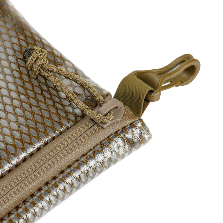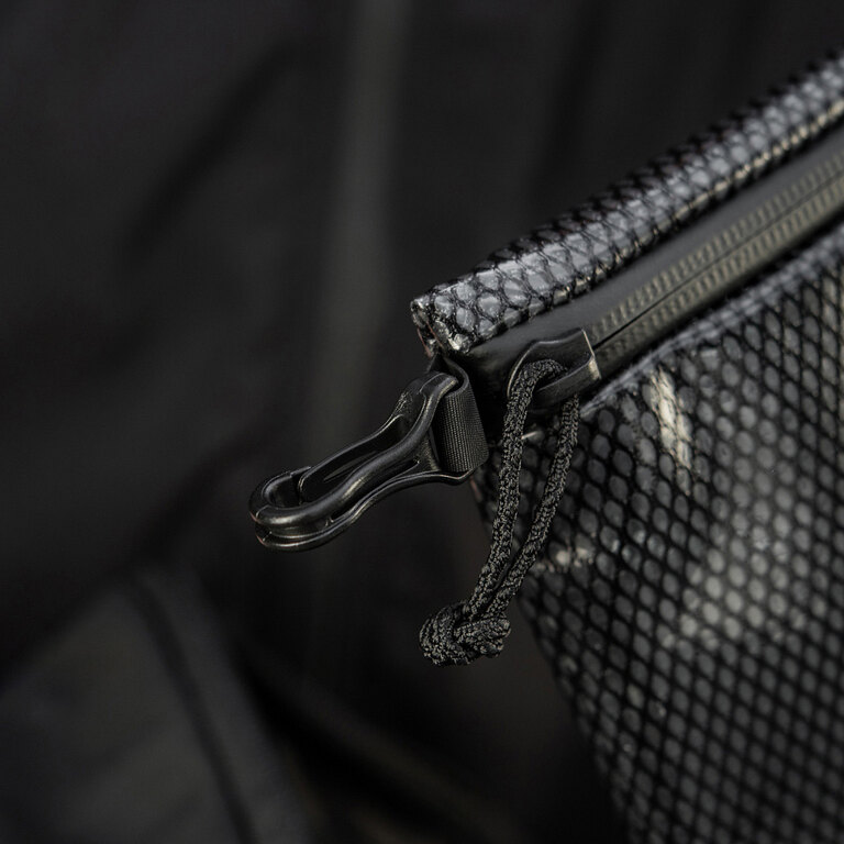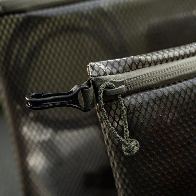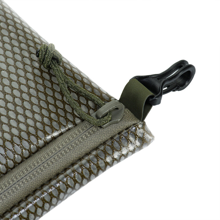 Vrecká sú vyrobené z laminovanej PVC sieťoviny, ktorá kombinuje vysokú pevnosť a odolnosť s ľahkosťou. Materiál znesie časté používanie, ohyb aj menšie nárazy, pričom zachováva kompaktné rozmery s minimálnou váhou. Kvalitné zipsy umožňujú hladké otváranie a zatváranie aj pri častom používaní.