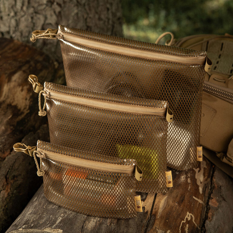 Súprava vreciek na zips Elite M-Tac prináša praktické a prehľadné usporiadanie drobných vecí, ktoré potrebujete mať neustále so sebou. Laminovaná PVC sieťovina zabezpečuje vysokú pevnosť vreciek, odolnosť proti vode aj deformácii, takže obsah zostáva chránený aj v náročných podmienkach. Každé vrecko sa otvára a zatvára hladko aj pri častom používaní.