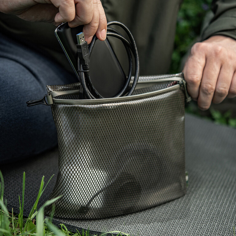 Súprava obsahuje 3 vrecká veľkostí S, M a L, vďaka ktorým možno ľahko triediť drobnosti podľa účelu alebo priority. Menšie sa hodia na kľúče, USB či mince, väčšie pojmú napríklad doklady, nabíjačky alebo hygienické potreby. Prehľadné usporiadanie skracuje čas hľadania a zvyšuje efektivitu práce aj pohybu. Organizéry sú upevnené zipsami YKK AquaGuard, ktoré spolu s laminovaným materiálom chránia obsah pred vodou a nepriaznivým počasím.