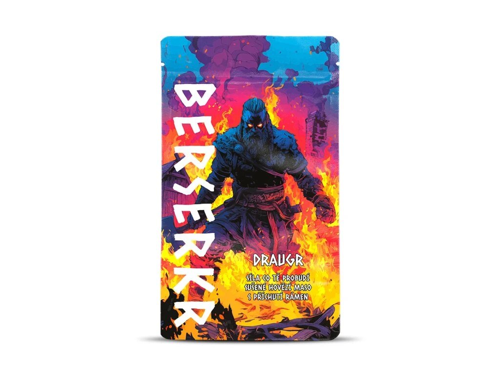 DRAUGR Ramen Berserker® je sušené hovädzie mäso (beef jerky) inšpirované chuťou ramen vývaru. Výrazný a aromatický profil kombinuje chuť hovädzieho mäsa s orientálnym korením, bylinkami a jemne slaným základom typickým pre ázijskú kuchyňu. Výsledkom je plná, komplexná chuť s výrazným umami charakterom, ktorá prináša odlišný pohľad na klasické sušené mäso. Vďaka spôsobu spracovania je jerky praktickou a skladnou desiatou vhodnou na cesty, do prírody aj ako rýchle doplnenie energie počas dňa.
