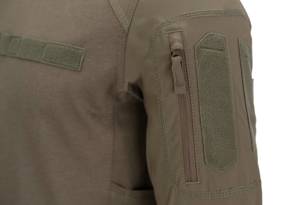 Rukávy sú vyrobené z elastickej nylonovej tkaniny s prímesou elastanu, ktorá poskytuje vysokú odolnosť proti oderu a zároveň zachováva pružnosť. Tričko je tak vhodné aj pre náročnejšie podmienky, kde dochádza ku kontaktu s výstrojom alebo zbraňou.