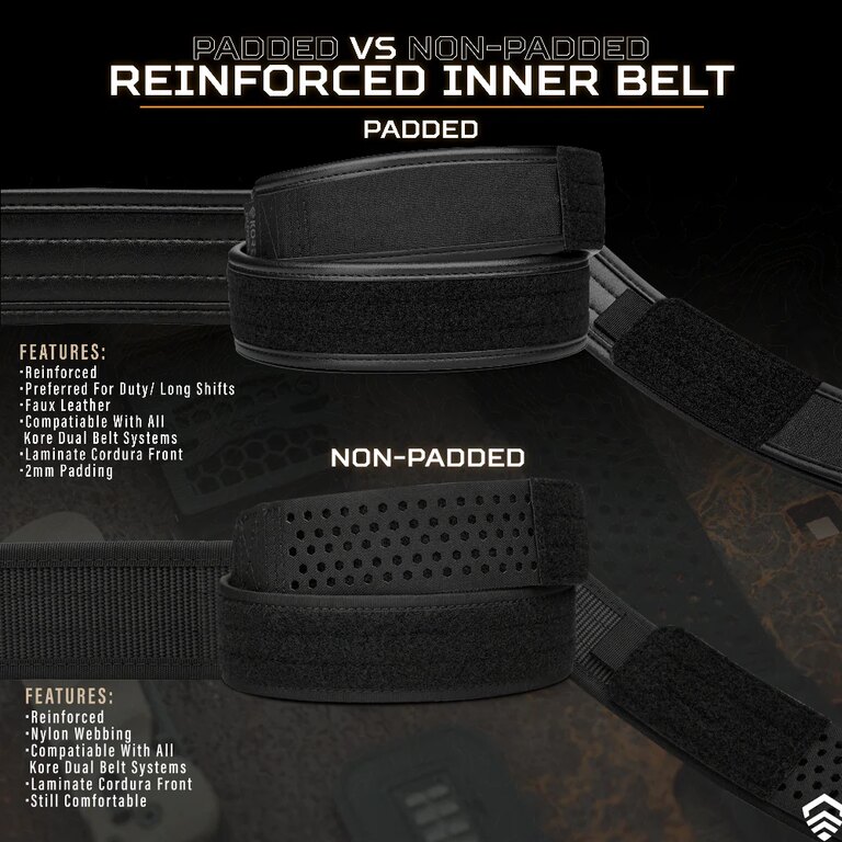 Vnútorný polstrovaný opasok Kore počíta s tým, že príde pod battle belt, duty belt alebo IPSC belt. Keď sa kompletná výstroj oprie o boky, drží spoľahlivo, nevtláča sa do tela a zabezpečuje plný rozsah pohybu. Výbava neskáče a celé riešenie zostáva stabilné.