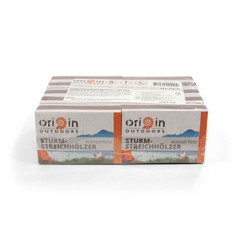 Zápalky Storm Origin Outdoors sú vybavené predĺženou sírovou hlavičkou pre stabilnejšie horenie aj vo vetre. Zapálené vydržia aj pri silnejšom vetre a vďaka úprave sú odolné voči vlhkosti. Každá krabička obsahuje 20 kusov zápaliek, ktoré sú určené pre vonkajšie použitie.